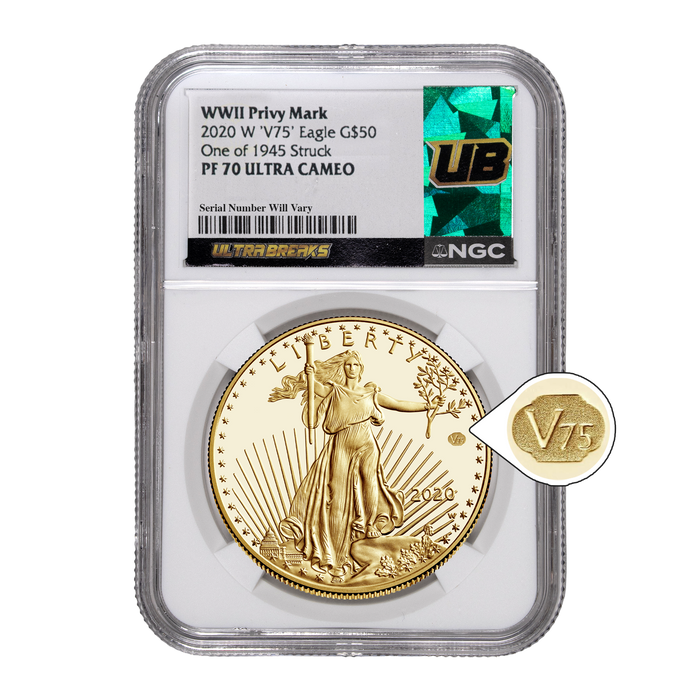 2020 $50 Gold Eagle V75 Privy NGC PF70 Nitro
