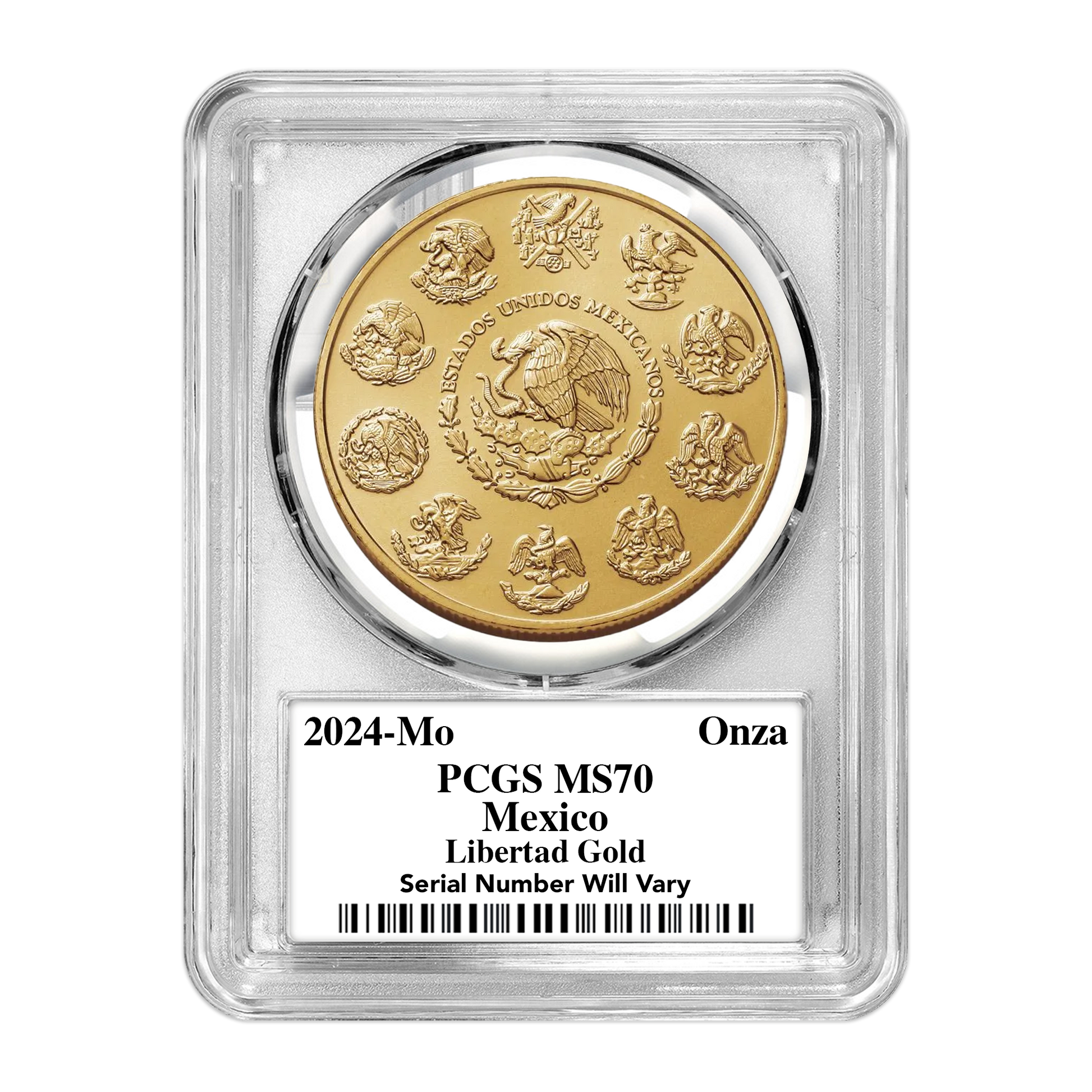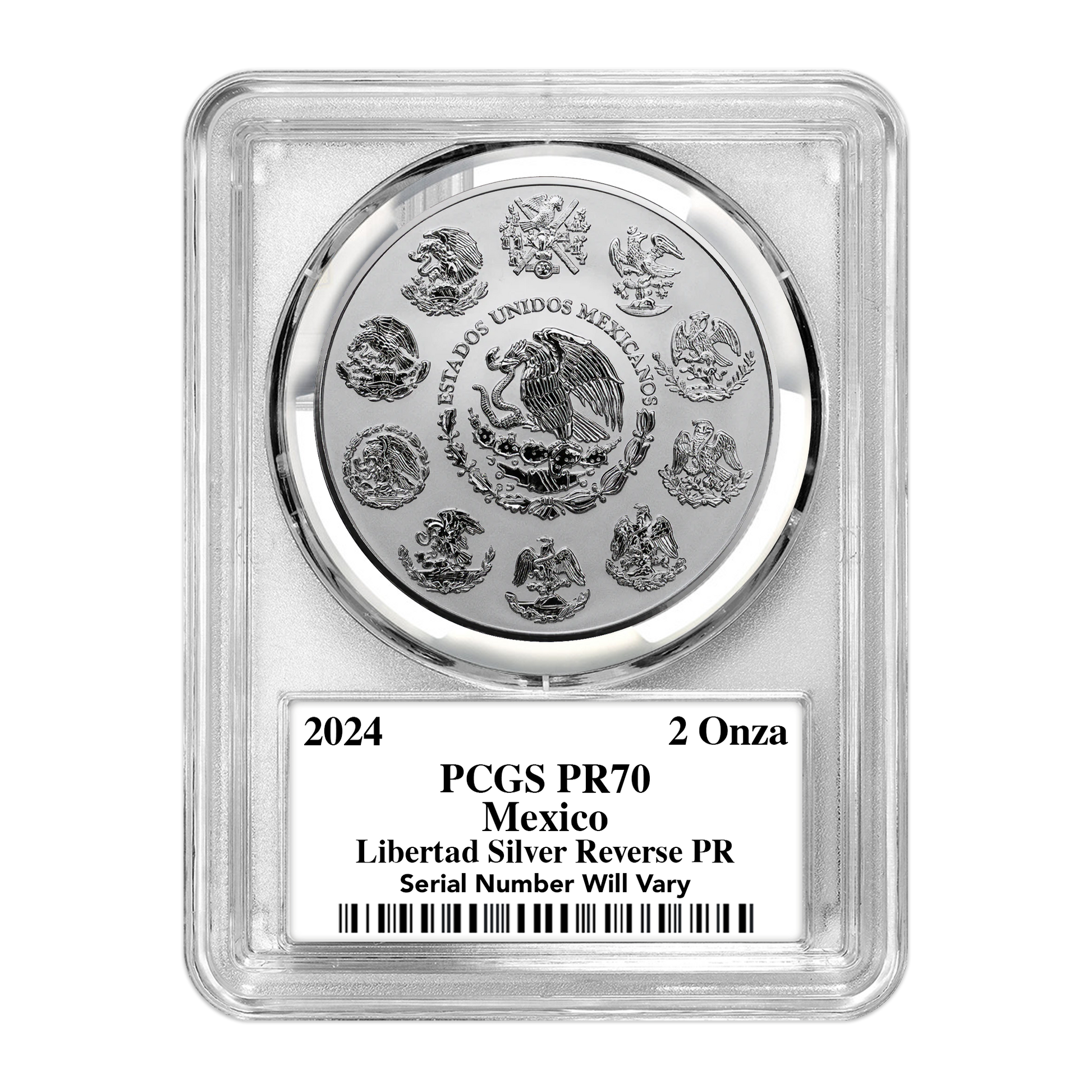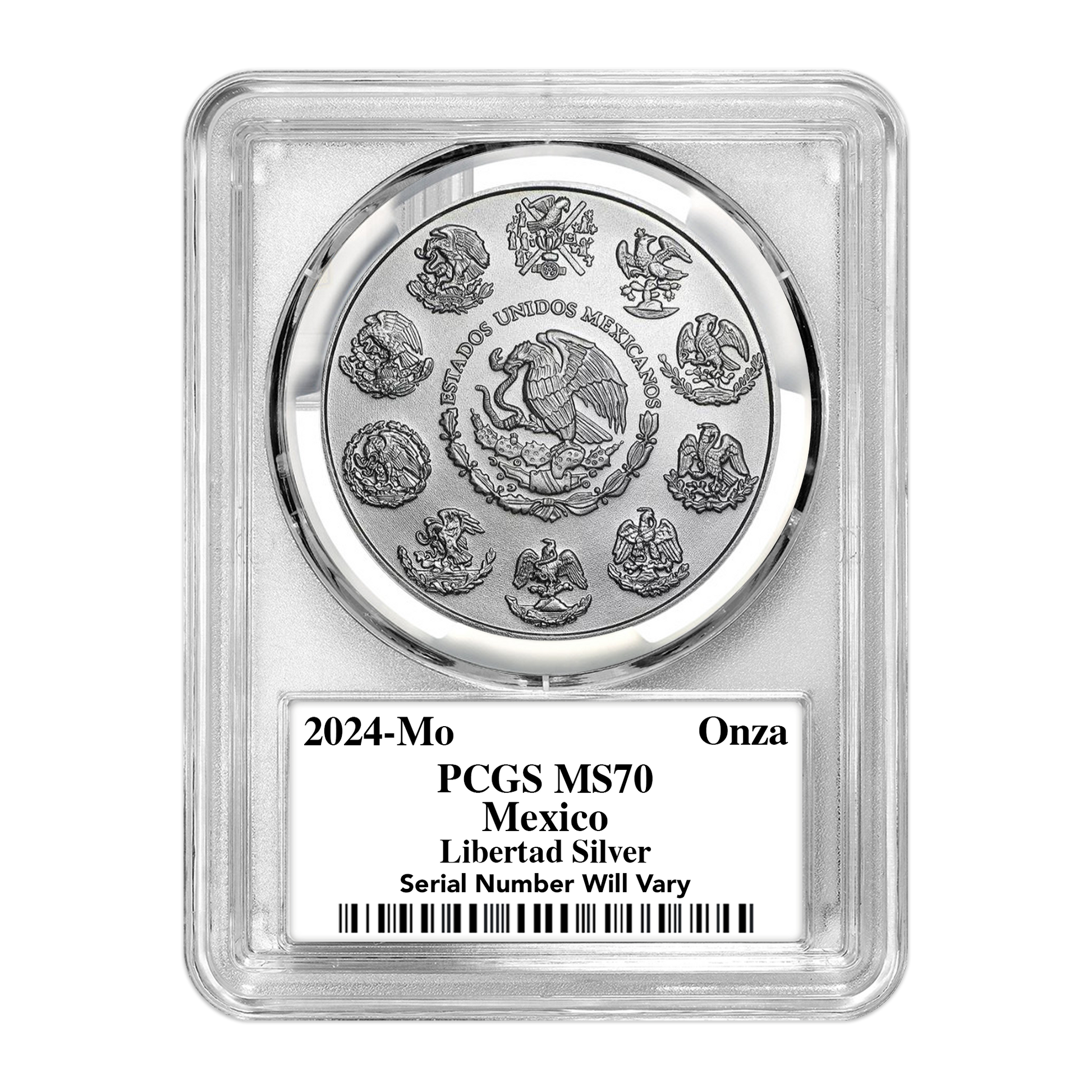 - 1,000 of the 2024 Mexican Libertad 1 oz silver coins graded MS70 by PCGS (890 Ultra labels, 100 Gold Rush labels, and just 10 Infinity labels)