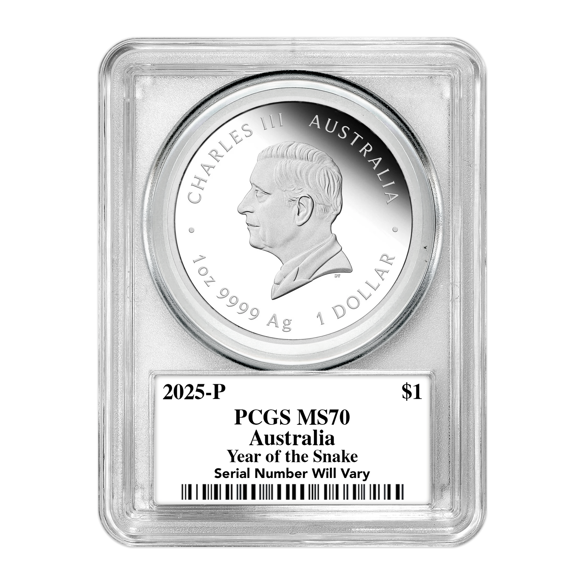 - 1,000 of the 2025 Perth Mint Year of the Snake 1 oz silver coins graded MS70 by PCGS (890 Ultra labels, 100 Gold Rush labels, and just 10 Infinity labels)