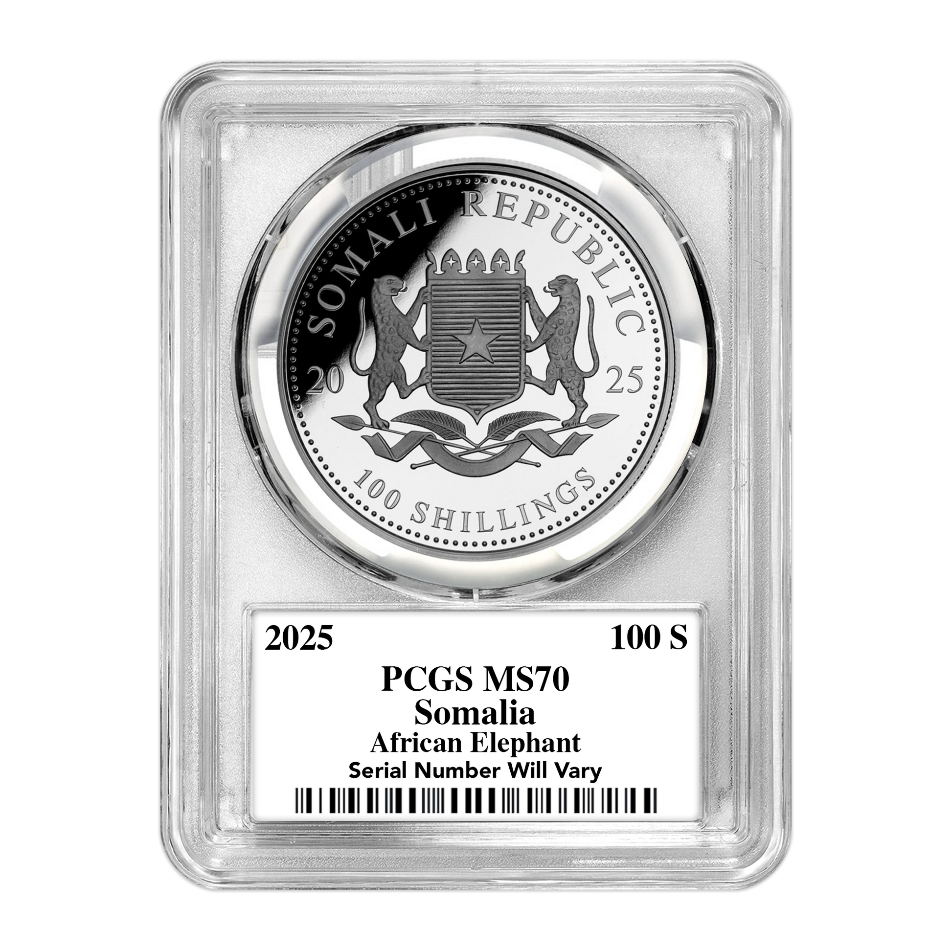 - 500 of the 2025 Somalia Elephant 1 oz silver coins (445 Ultra labels, 50 Gold Rush labels, and just 5 Infinity labels)