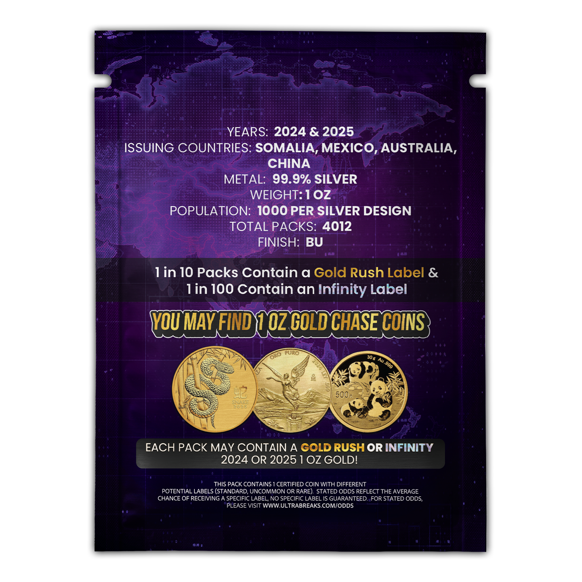 I had bought others from a different website. I spent alot and got 2 regular coins. I always check the ultra break website and was lucky to find the reloaded. I ordered 2 and when I opened the 1st it was a 1oz gold $100 Silver Ultra label Australia p135 lunar. I was very happy. I have been holding off on the 2nd order until later today. But ordering directly from ultra breaks was easy to order, track and was securely packaged. Now I can't wait for upcoming item.