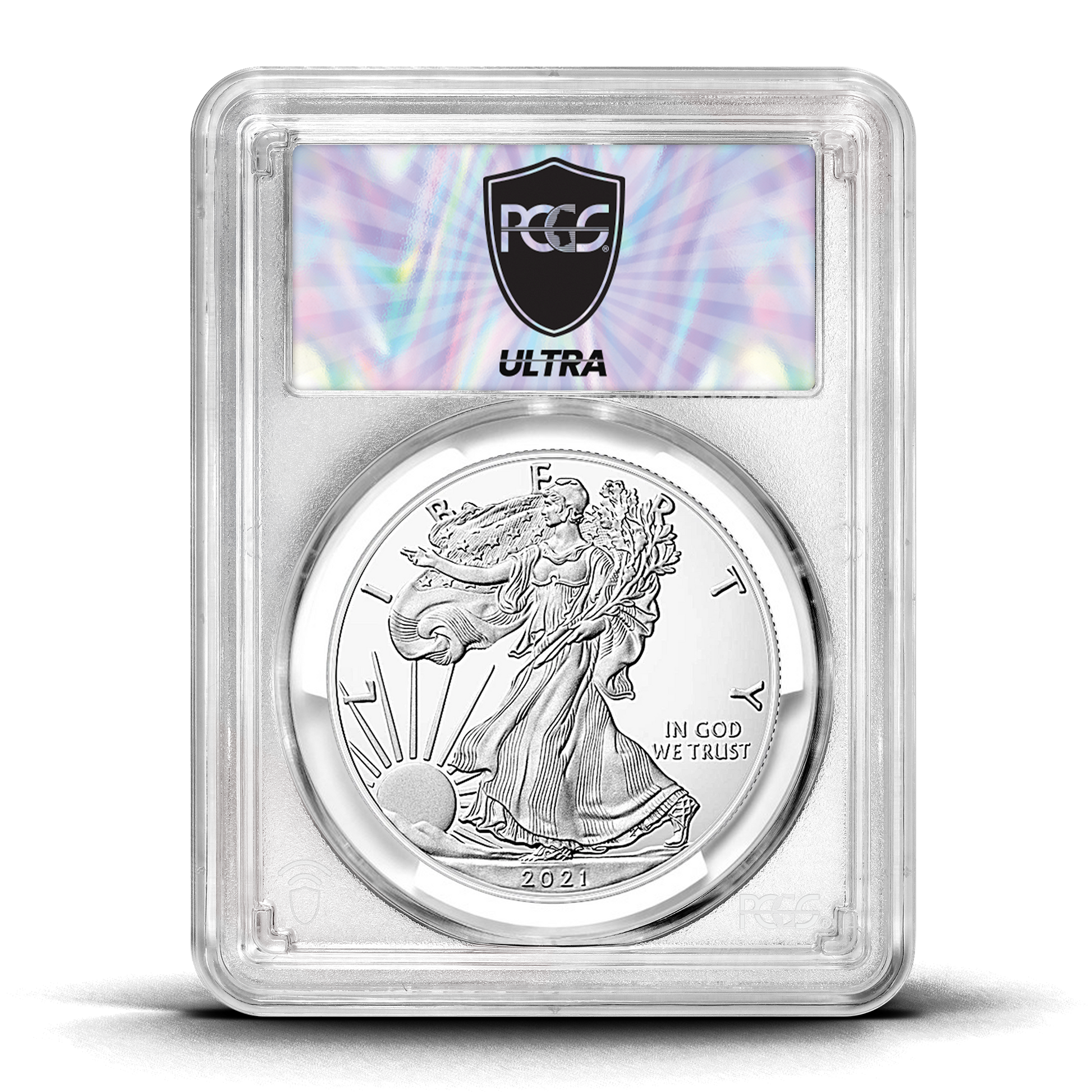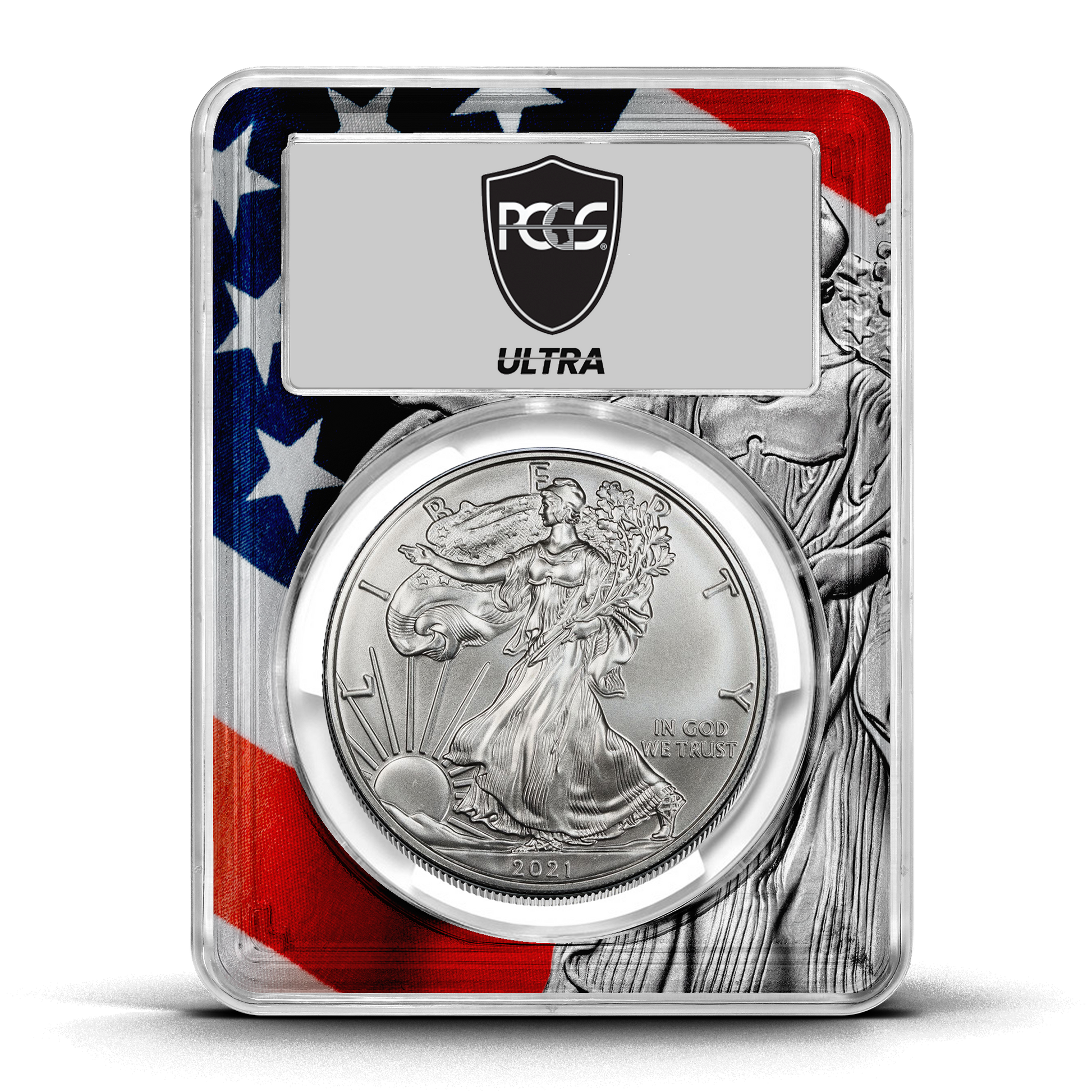 2021 Type 1 Silver Eagle MS70 PCGS (256 Ultra, 150 Ultra Flag Core, 46 Gold Rush and 4 Infinity labels)