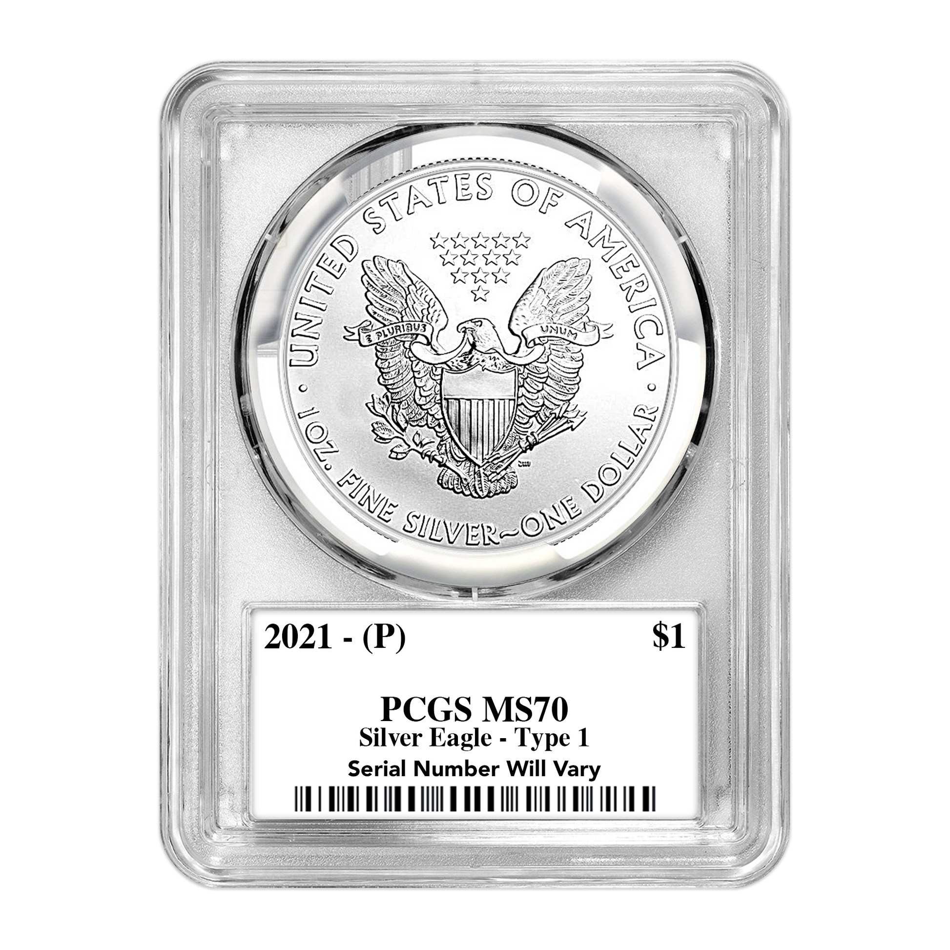 2021-P Silver Eagle MS70 PCGS (107 Ultra, 50 Ultra Flag Core, 17 Gold Rush, 1 Infinity labels)