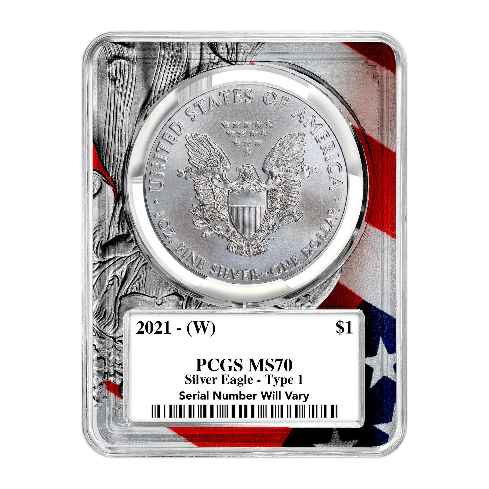 2021-W Type 1 Silver Eagle MS70 PCGS (148 Ultra, 75 Ultra Flag Core, 25 Gold Rush, 2 Infinity labels)