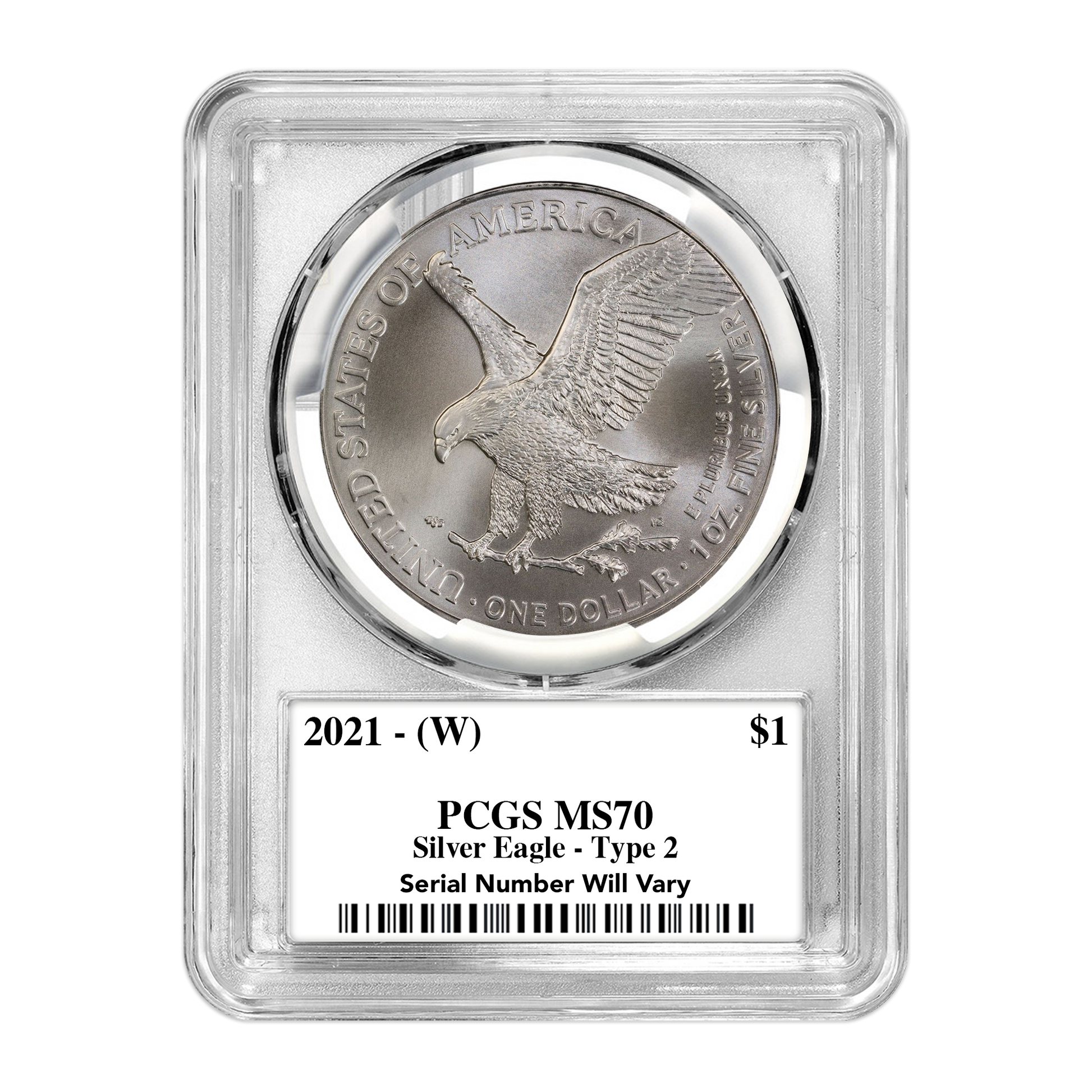 2021-W Type 2 Silver Eagle MS70 PCGS (148 Ultra, 75 Ultra Flag Core, 25 Gold Rush, 2 Infinity labels)