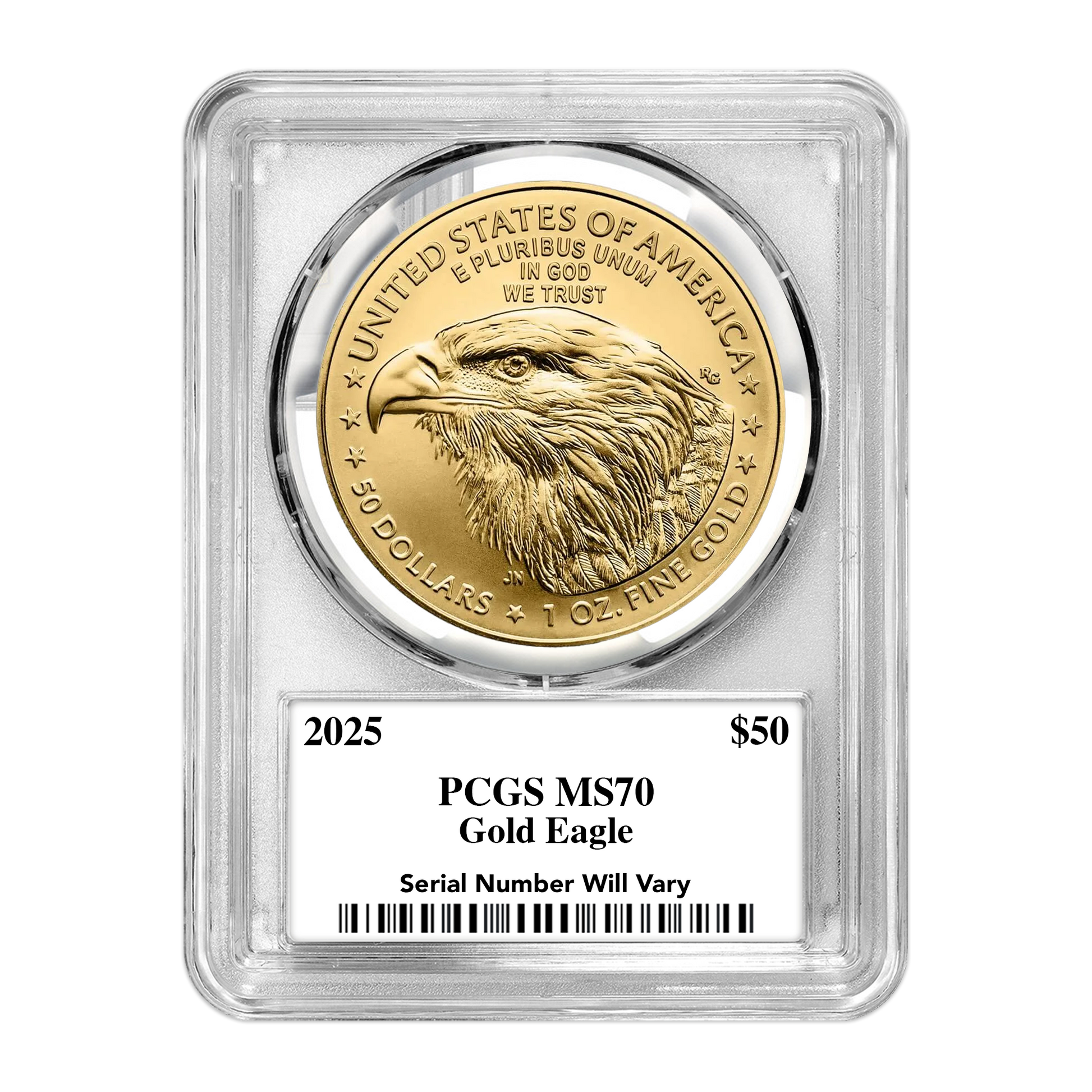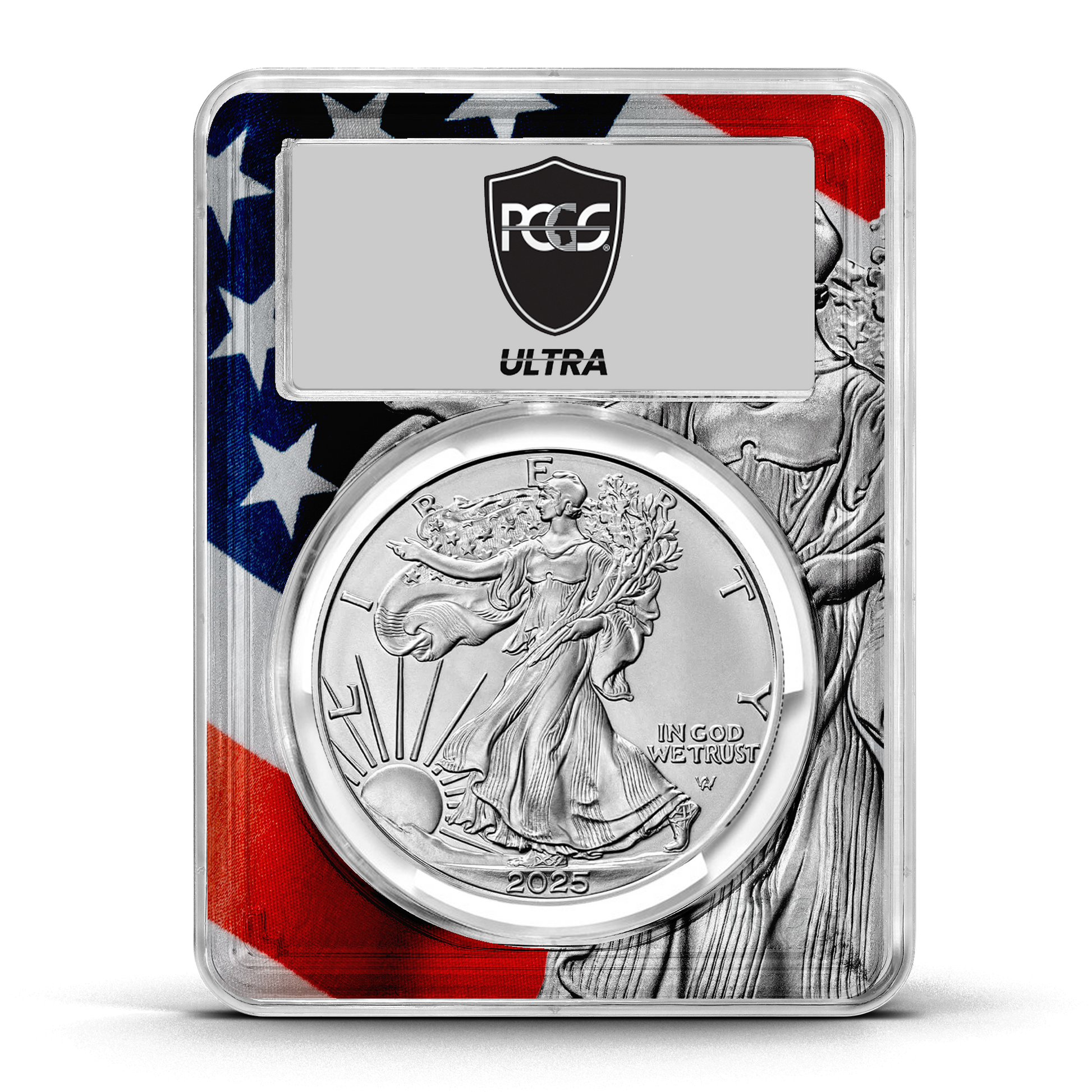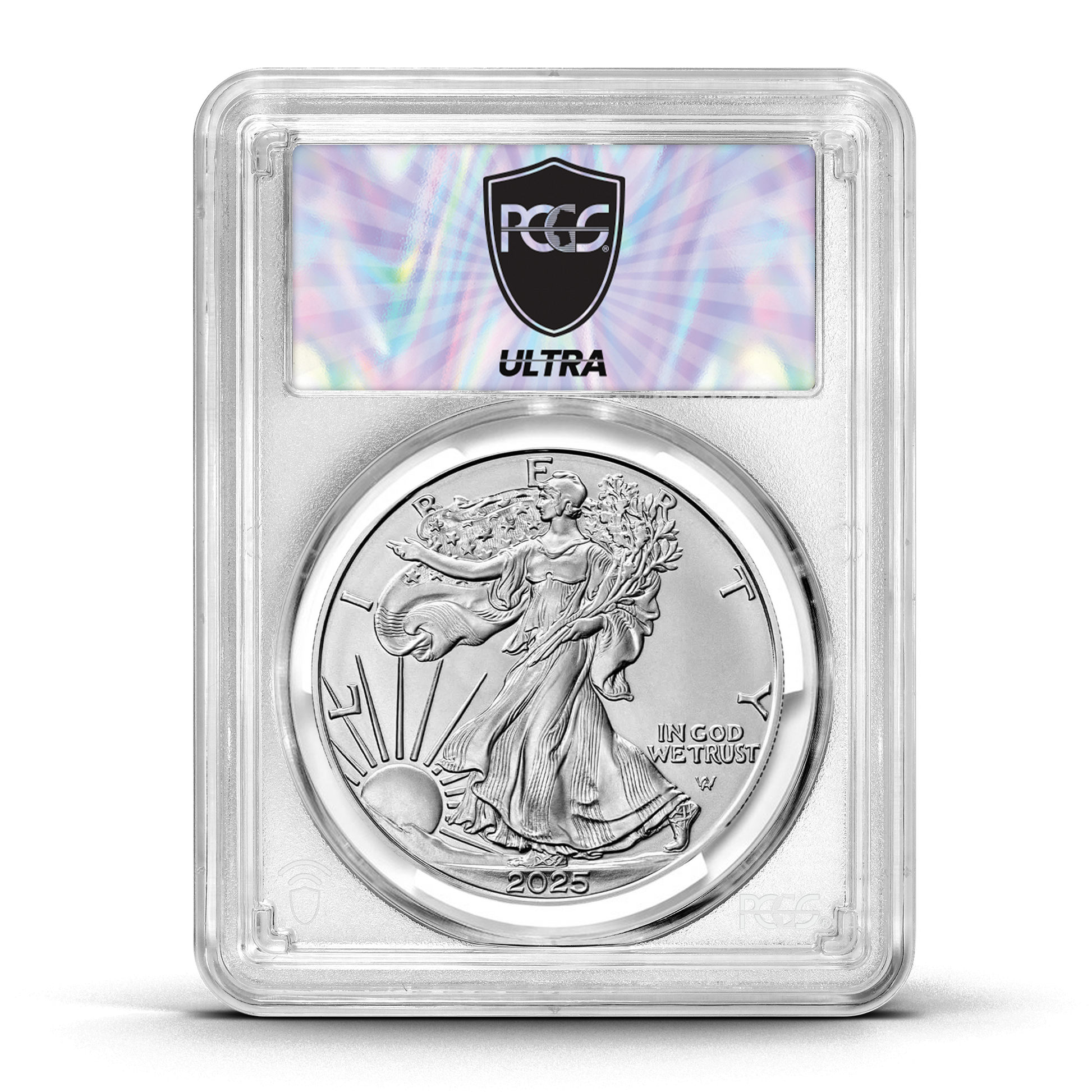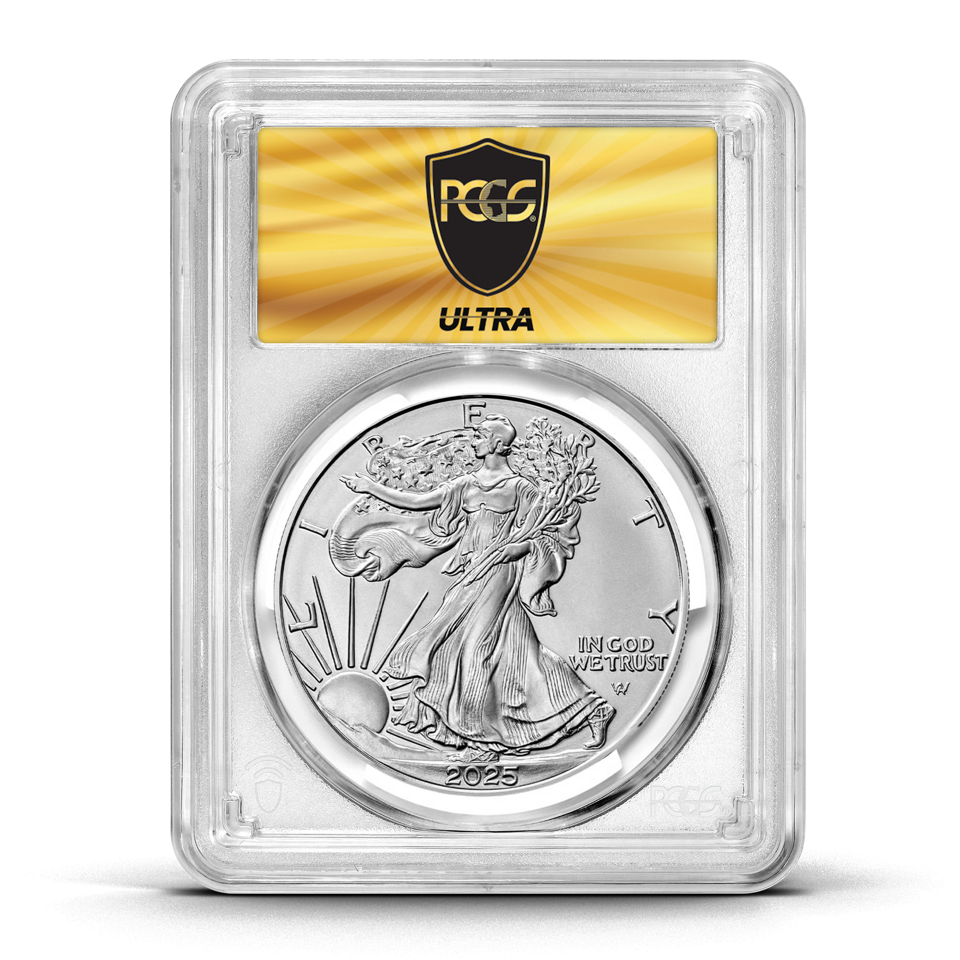 - 2,500 of the 2025 Silver Eagle graded MS70 by PCGS (1725 Ultra labels, 500 Flag Core Ultra labels, 250 Gold Rush labels, and just 25 Infinity labels)