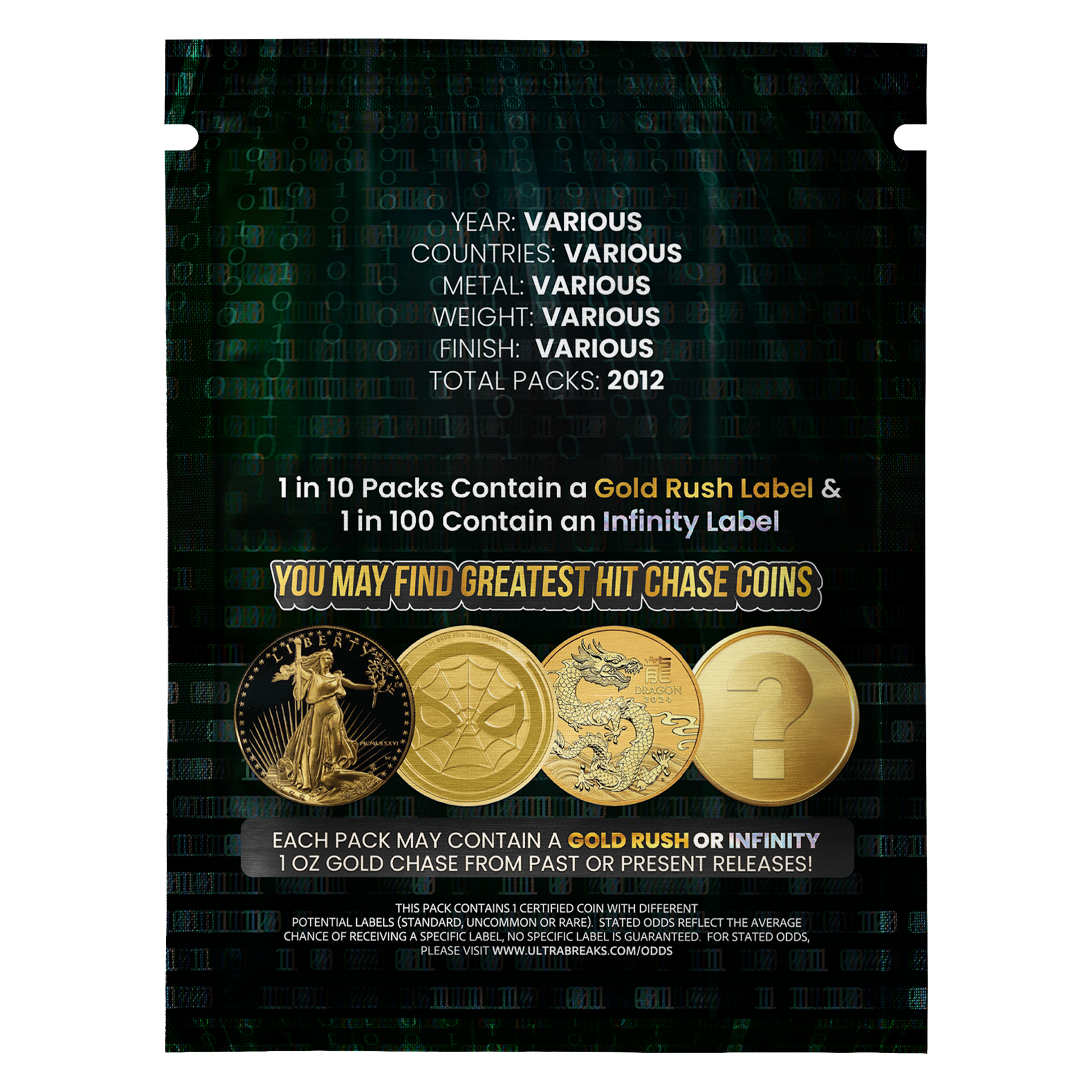 UltraBreaks Reloaded is here—and it’s the most chase-loaded release in UltraBreaks history. Inspired by trading card buybacks, this drop is loaded with 112 total chasers, including the first-ever ½ oz Platinum coins, alongside 600+ Buybacks like the 1986 $50 Gold Eagle – Infinity Label!